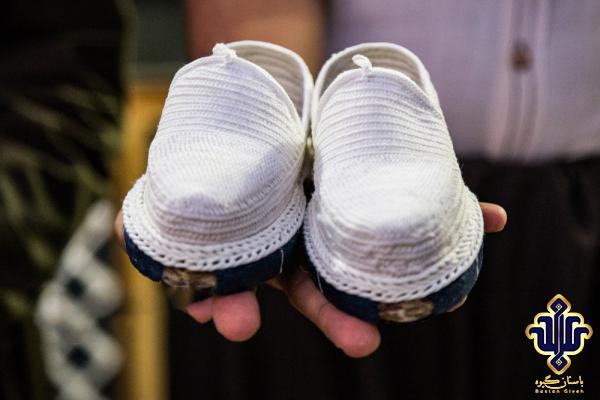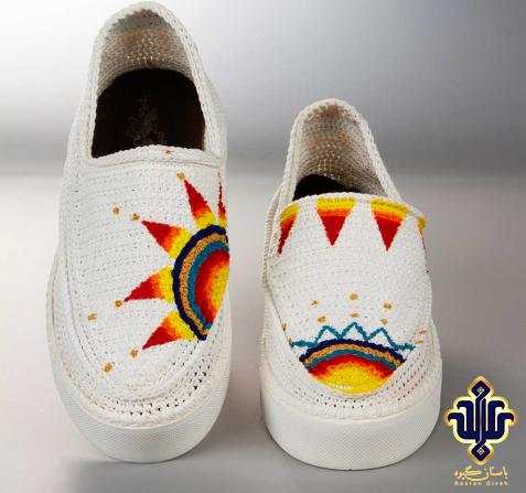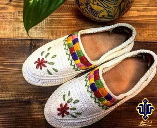 Kurdish gyve, which is called Kelash in the local language. This garment is needle woven and its sole is handmade and made of 100% cotton fabric and leather. The traditional color of this garment is white and its lining fabric is blue and red. But Bastan Giveh company produces this product in different colors.